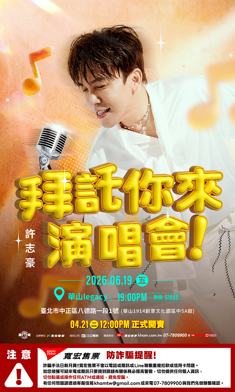 許志豪 2026 拜託你來 演唱會,4/21(二) 中午12:00全面啓售